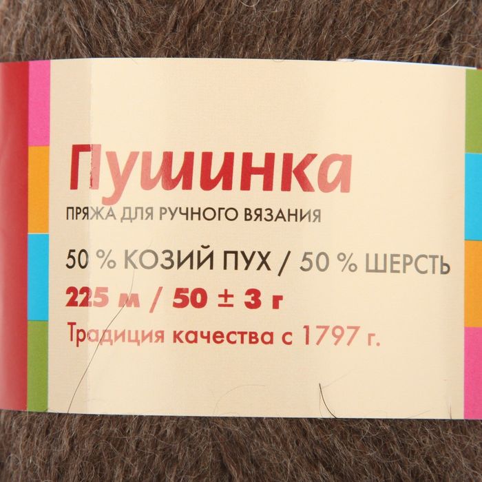 Пряжа "Пушинка" 50% шерсть, 50% козий пух 225м/50гр (3656, темно-коричневый)