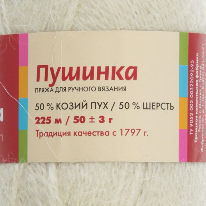 Пряжа "Пушинка" 50% шерсть, 50% козий пух 225м/50гр (3830, ванильный)
