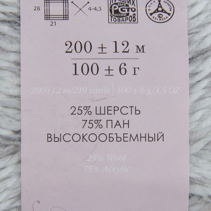 Пряжа "Радужный стиль" 25% шерсть, 75% ПАН 200м/100гр (748-Мулине серый/белый)
