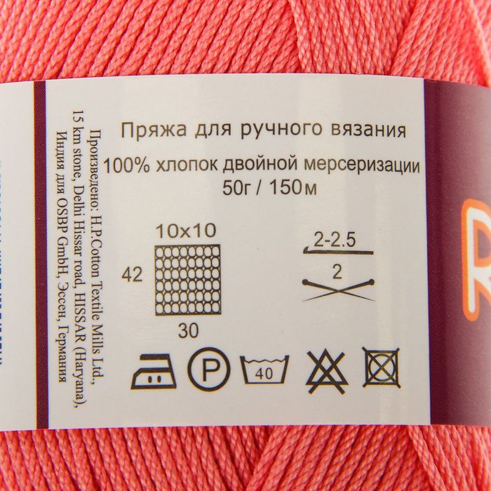 Пряжа "Rosе" 100% мерсеризованный хлопок 150м/50гр (3905 роз.коралл)