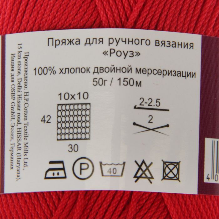 Пряжа "Rosе" 100% мерсеризованный хлопок 150м/50гр (3917 красный)