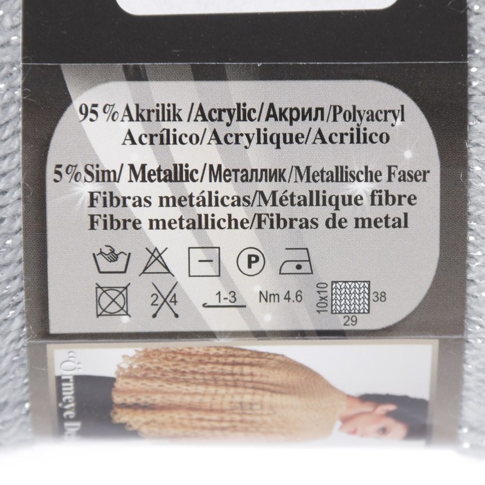 Пряжа "Sal simlii" 95% акрил, 5% металлик 460м/100гр (21 серый меланж)