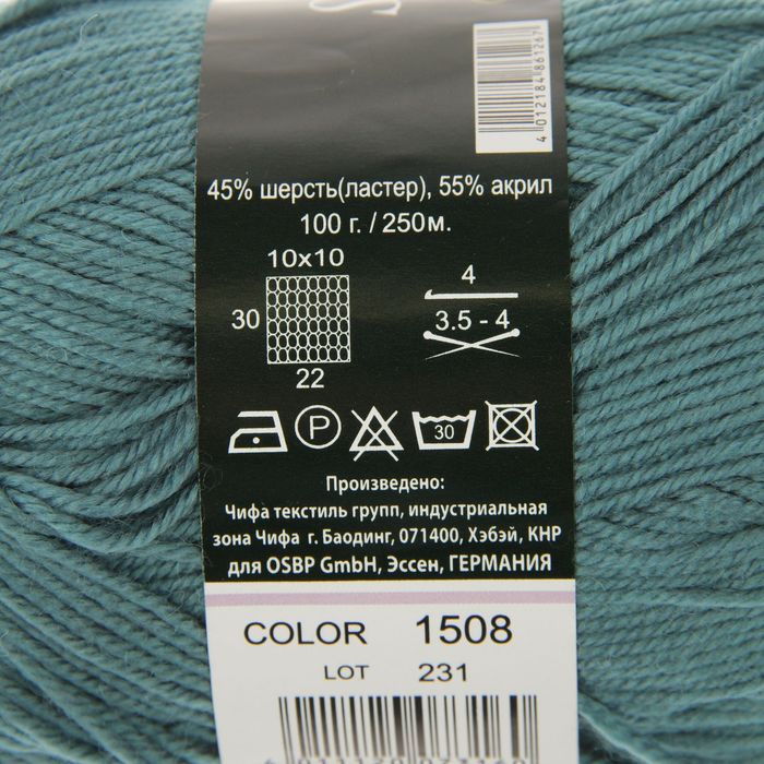 Пряжа "Sapphire" 45% шерсть, 55% акрил 250м/100гр (1508 дымчато-зел.)