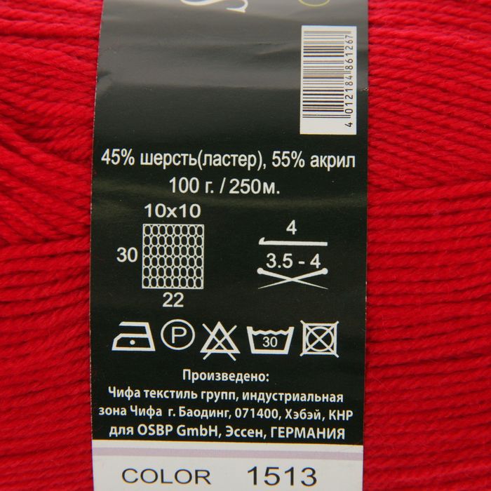Пряжа "Sapphire" 45% шерсть, 55% акрил 250м/100гр (1513 красный)
