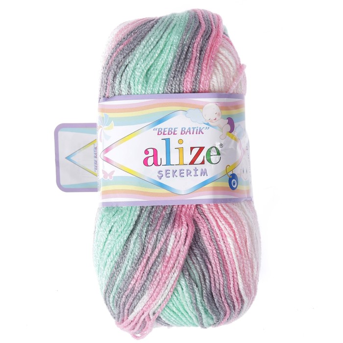Пряжа "Sekerim batik" 100% акрил 320м/100гр (6541 белый-розовый-мята-серый)