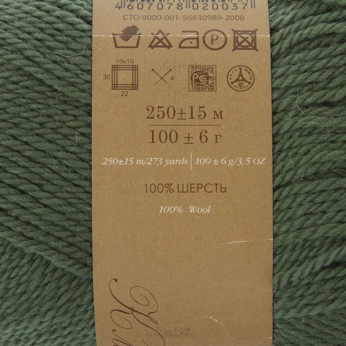 Пряжа "Секрет успеха" 100% шерсть 250м/100гр (326-Зел.чай)