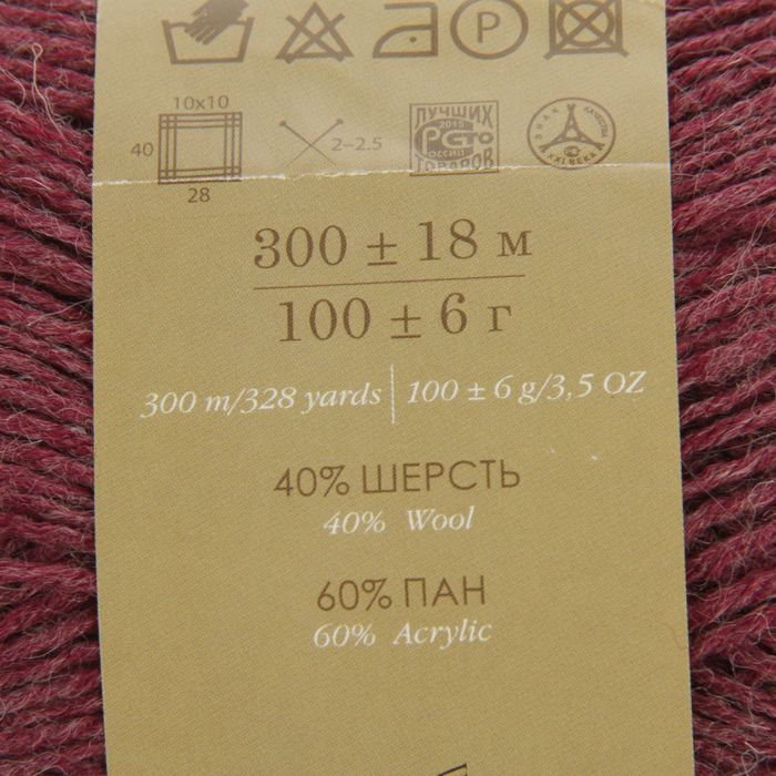Пряжа "Семейная" 40% шерсть, 60% акрил 300м/100гр (1007-Свекольн.)