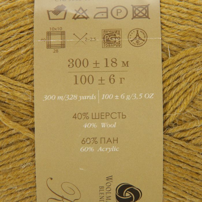 Пряжа "Семейная" 40% шерсть, 60% акрил 300м/100гр (33-Зол.олива)