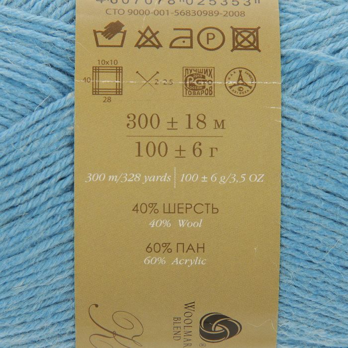 Пряжа "Семейная" 40% шерсть, 60% акрил 300м/100гр (877-Небесно голуб.)