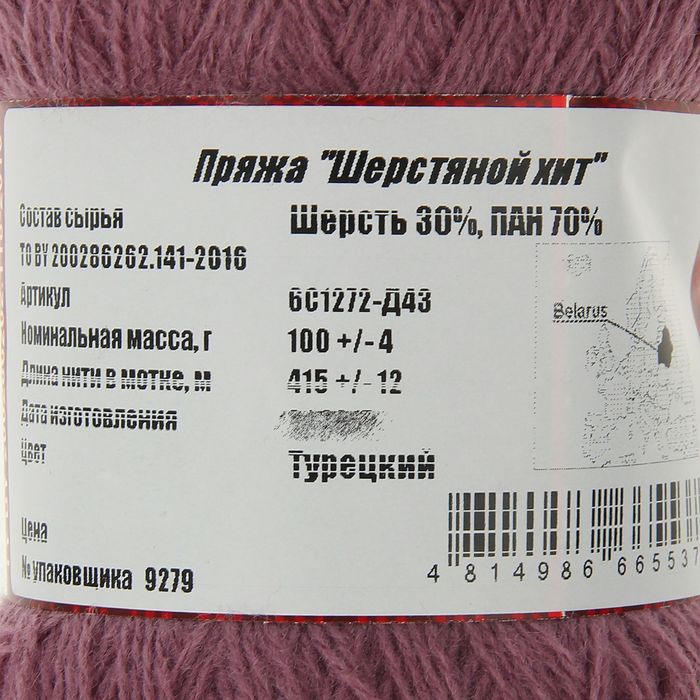 Пряжа "Шерстяной хит" 30% шерсть, 70% ПАН 415м/100гр (Турецкий)