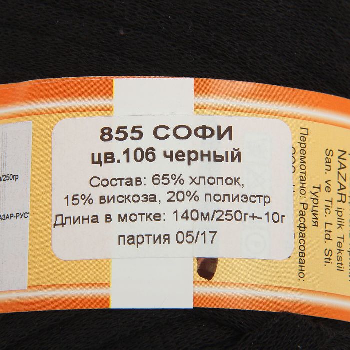 Пряжа "Софи" 65% хлопок, 15% вискоза, 20% полиэстер 140м/250гр (106 черный)