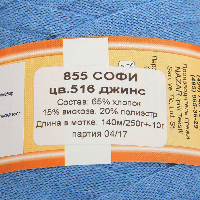 Пряжа "Софи" 65% хлопок, 15% вискоза, 20% полиэстер 140м/250гр (516 джинс)