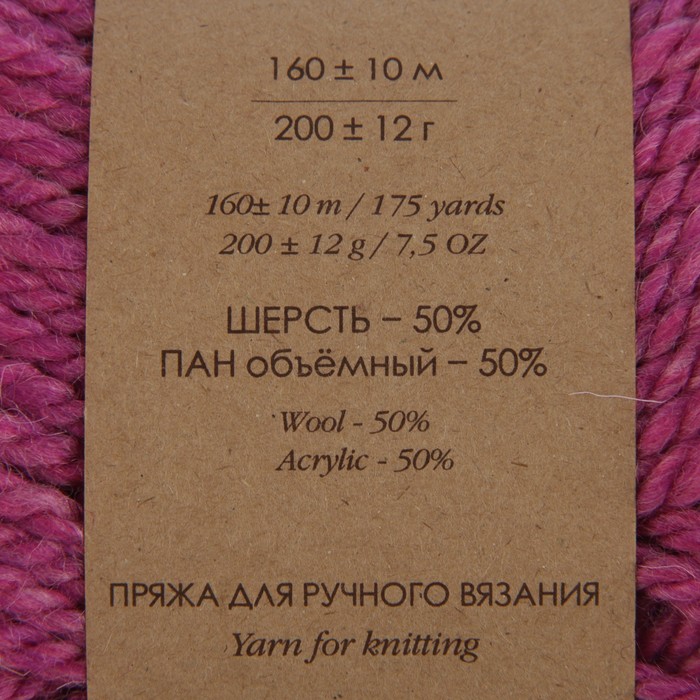 Пряжа "Сувенирная" 50% акрил, 50% шерсть 160м/200гр (158-Розовомалиновый)