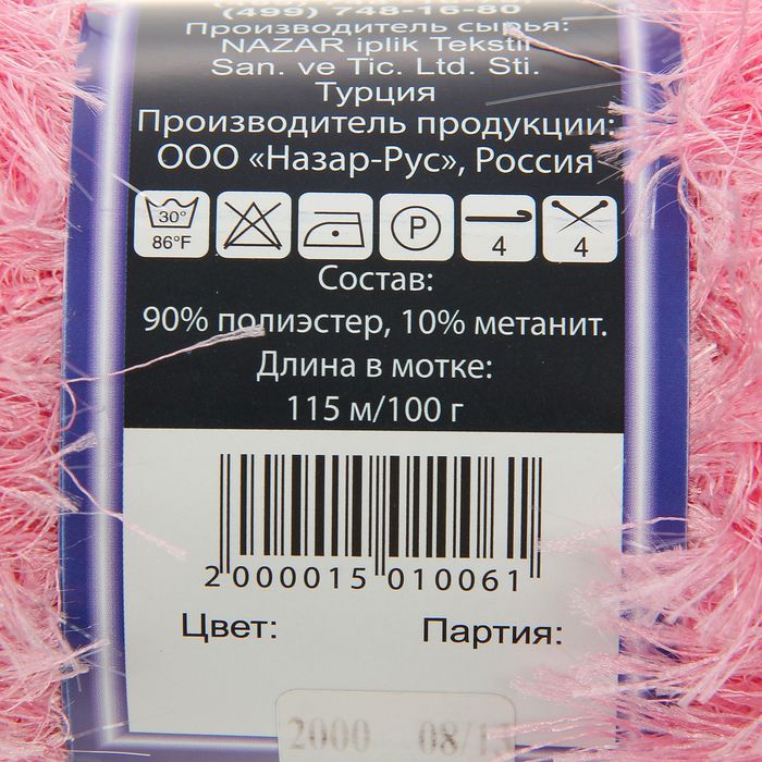 Пряжа "Травка с метанитом" 90% полиэстер, 10% метанит 115м/100гр (2000 розовый)