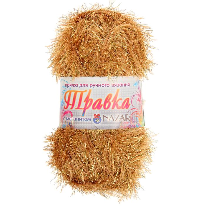 Пряжа "Травка с метанитом" 90% полиэстер, 10% метанит 115м/100гр (2079 т.золото)