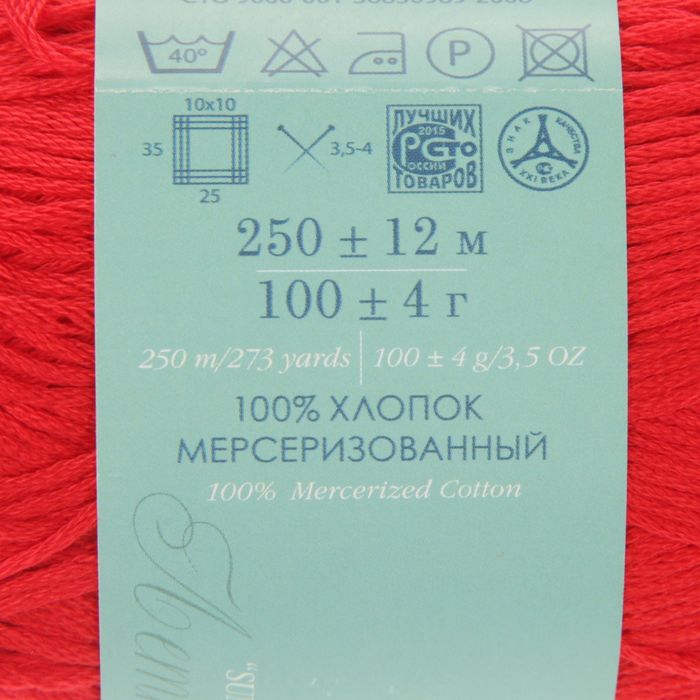 Пряжа "Весенняя" 100% мерсеризованный хлопок 250м/100гр (06-Красный)