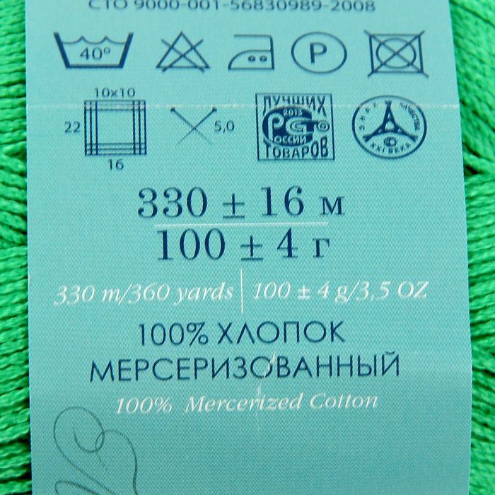 Пряжа "Виртуозная" 100% мерсеризованный хлопок 330 м/100 гр (480-Яр.зелень)