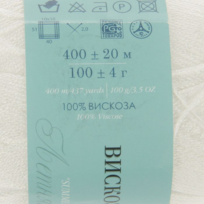 Пряжа "Вискоза натуральная" 100% вискоза 400м/100гр (01-Белый)