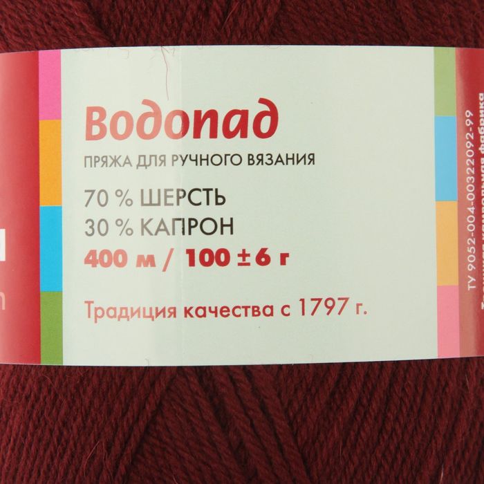 Пряжа "Водопад" 70% шерсть, 30% капрон 400м/100гр (0023, вишня)
