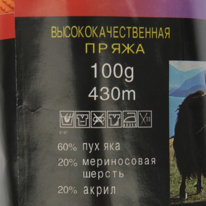 Пряжа "Yak wool" 60% пух яка, 20% меринос.шерсть, 20% акрил 430м/100гр (207 апельсин )
