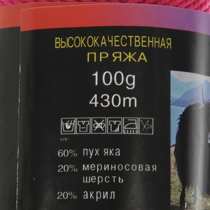 Пряжа "Yak wool" 60% пух яка, 20% меринос.шерсть, 20% акрил 430м/100гр (2242 мальва)