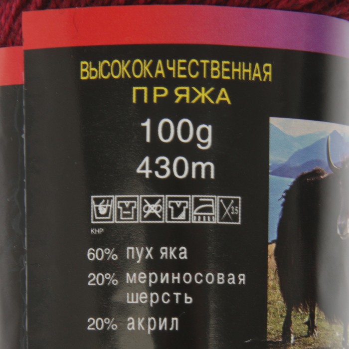 Пряжа "Yak wool" 60% пух яка, 20% меринос.шерсть, 20% акрил 430м/100гр (2937 вишня мел.)