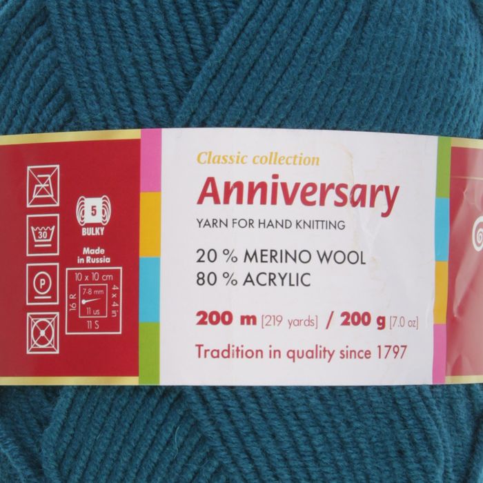 Пряжа "Юбилейная" 20% меринос.шерсть, 80% акрил 200м/200гр (0339, мор.волна)