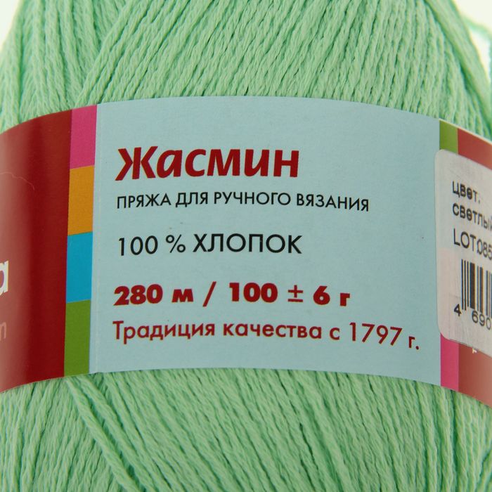 Пряжа "Жасмин" 100% хлопок 280м/100гр (0058, светлый салат)