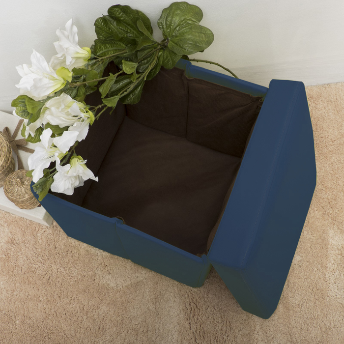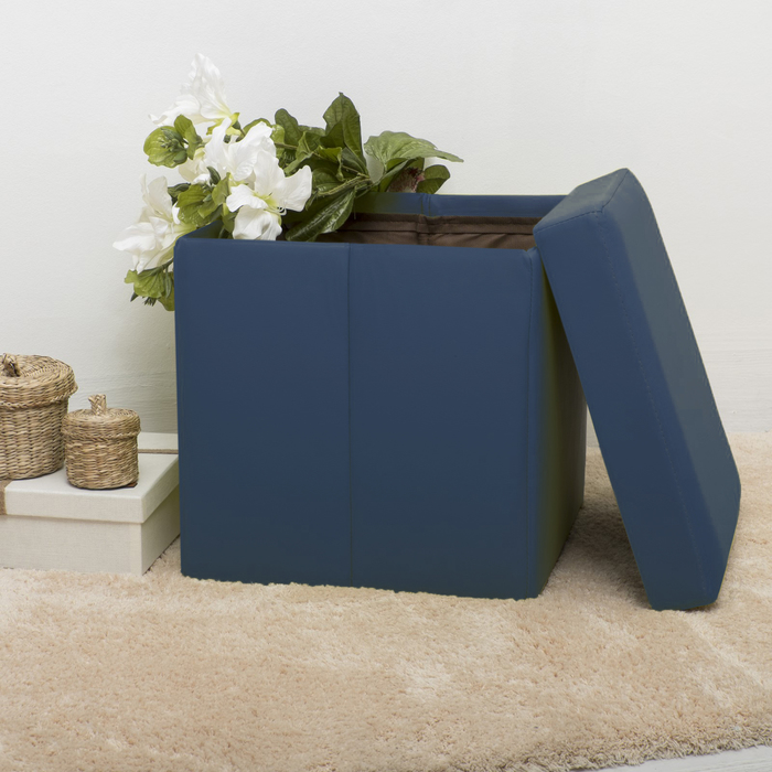Пуф-куб с нишей для хранения, размер 38х38х38 см, кожзам, цвет синий микс