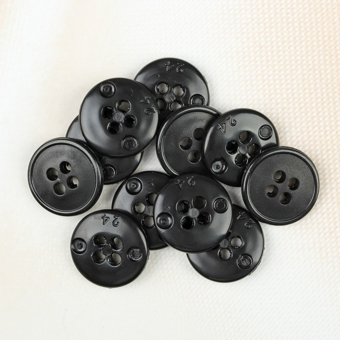 Пуговица, 4 прокола, выпуклая, 15мм, цвет чёрный