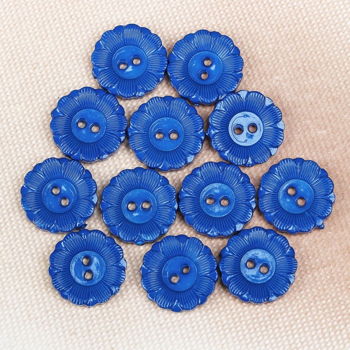 Пуговица декоративная, 2 прокола, 15мм, цвет синий