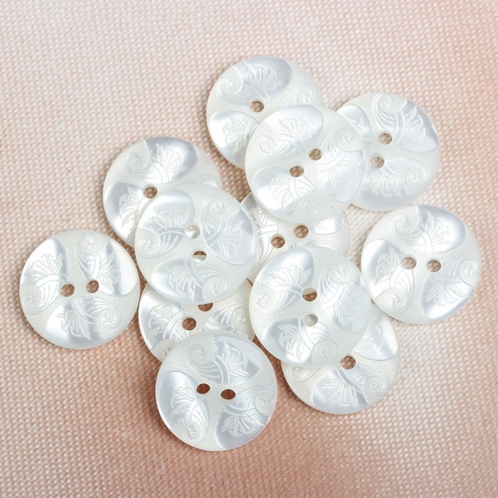 Пуговица декоративная, 2 прокола, 20мм, цвет белый