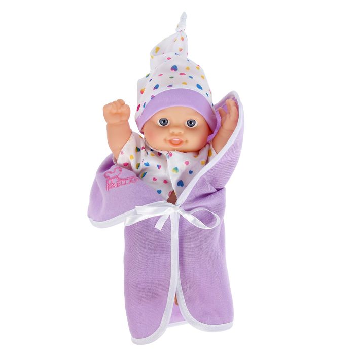 У игрушки двигаются руки, ноги и голова. Кукла сделана из пластика. В набор вместе с пупсом входит одеяло, бутылочка и соска. В коллекции представлены три разные модели: с белым, сиреневым и розовым одеялом-конвертом.