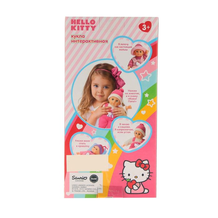 Пупс в шапочке и стильном костюмчике с изображением Hello Kitti формирует у девочек хороший вкус. Одежда легко снимается и одевается, что позволяет разнообразить игру и примерить новый наряд. Переодевания развивают мелкую моторику рук и творческое мышление. Куклу можно раздевать и укладывать спать, в горизонтальном положении карапуз засыпает и медленно закрывает глаза. У пупса мягкое тело, его приятно обнимать и убаюкивать.