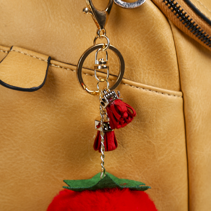 Пушистик на кольце "Клубничка" красный 6,5х6х6 см
