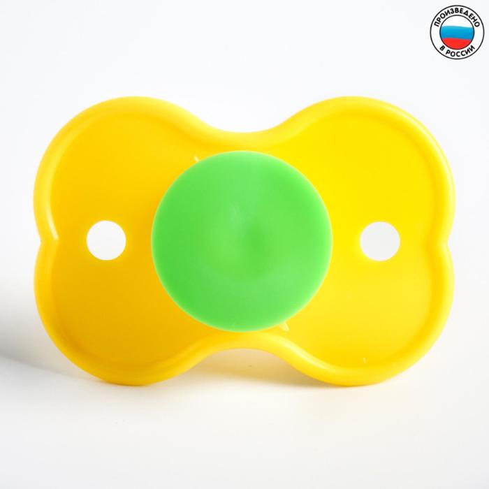 Изделие имеет шайбу-нагубник симметричной формы с двумя отверстиями для вентиляции. Пустышка без кольца считается ночной: плоская кнопка не помешает, если малыш спит на животе.