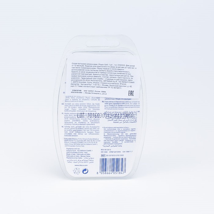 Пустышка Physio Soft,1 шт.,12мес.+, силикон, прозрачн.