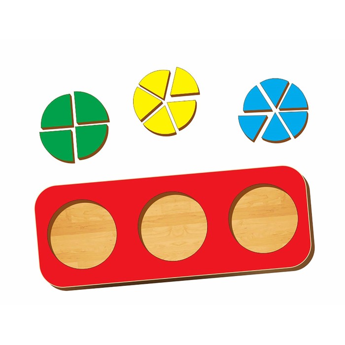 Рамка - вкладыш "Круги, 3 шт. " дроби по методике Никитина, с 1/4-1/6, МИКС
