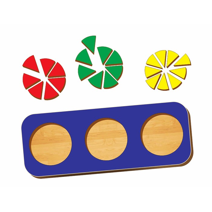 Рамка - вкладыш "Круги, 3 шт." дроби по методике Никитина, с 1/7-1/9, МИКС