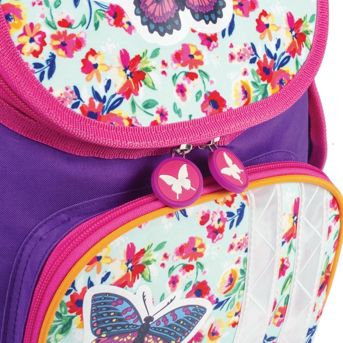 Ранец на молнии BRAUBERG 34*26*16 дев "Бабочка в цветах" 226907 — это очень практичное и качественное текстильное изделие, которое отвечает всем перечисленным требованиям.