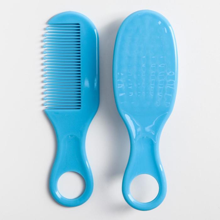 Расчёска детская + массажная щётка для волос, от 0 мес., цвет голубой
