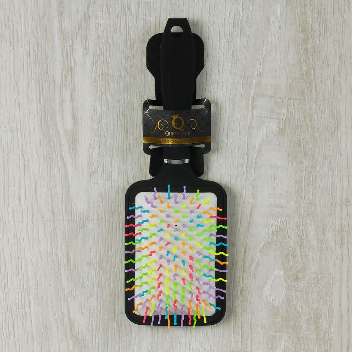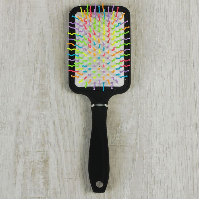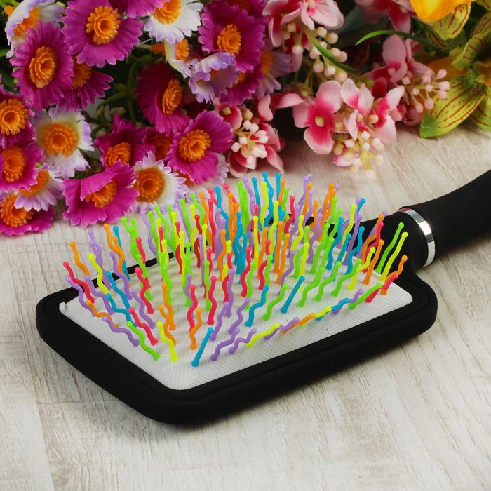 Расчёска массажная с прорезиненной ручкой, прямоугольная, цвет чёрный/серебряный