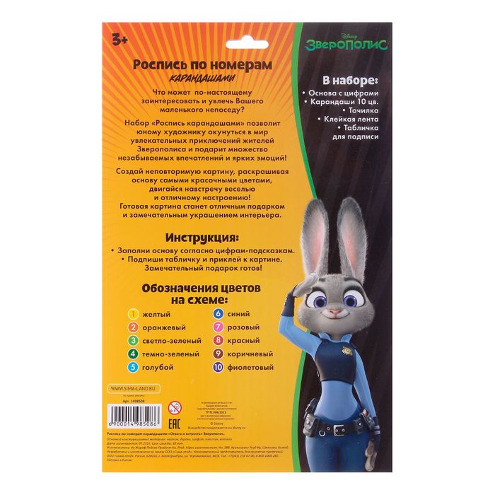 Раскраска по номерам "Отвага и хитрость" Зверополис (карандаши 10 шт., точилка, бонус) 21*30 см