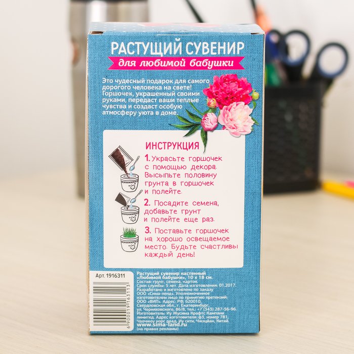 Растущий сувенир "Любимой бабушке" — сувенир в полном смысле этого слова. И главная его задача — хранить воспоминание о месте, где вы побывали, или о том человеке, который подарил данный предмет. Преподнесите эту вещь своему другу, и она станет достойным украшением его дома.