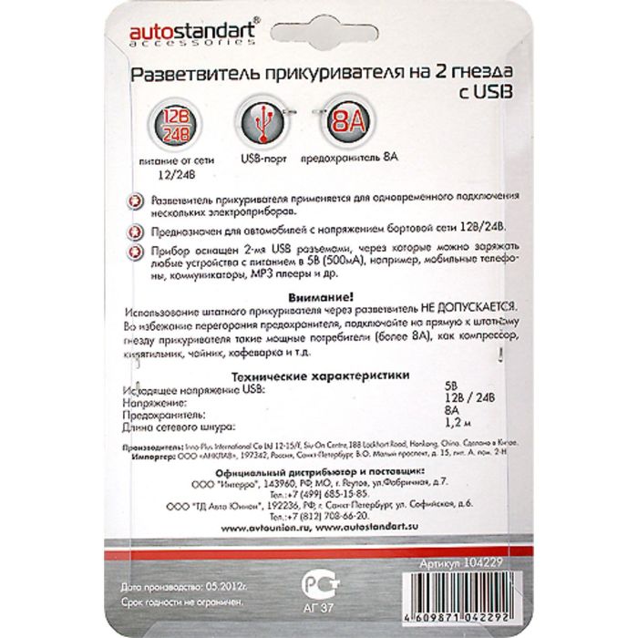 Не секрет, что машина давно уже перестала восприниматься как просто средство передвижения, и водители покупают всё лучшее для своих железных коней. Разветвитель прикуривателя на 2 гнезда 8А с USB, 12/24В, 0,5А — идеальный выбор, если вы ставите целью и улучшение технических характеристик, и поддержание внешнего вида автомобиля.
