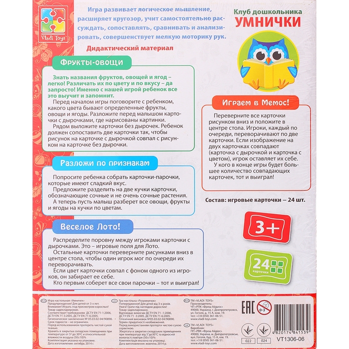 Развивающая игра 4 в 1 "Фрукты-Овощи. Клуб дошкольника"
