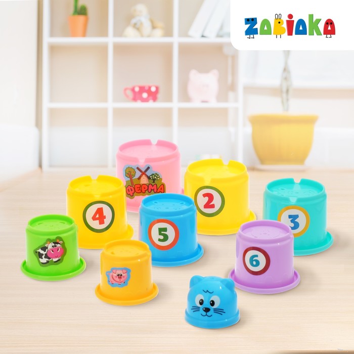 Развивающая игрушка «Пирамидка-стаканчики: Ферма», 9 предметов