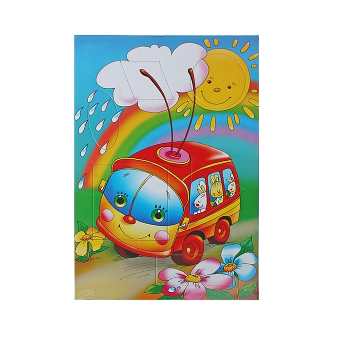 Развивающая рамка "Троллейбус" фигурный разрез, 6 элементов