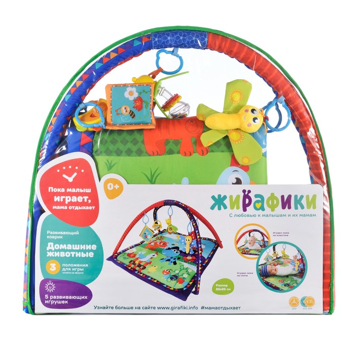 Развивающий коврик «Домашние животные», 5 игрушек и книжка шуршалка