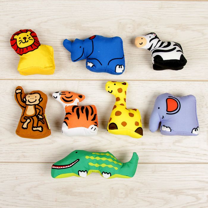 - В набор входят 9 текстильных игрушек с погремушками или пищалками.